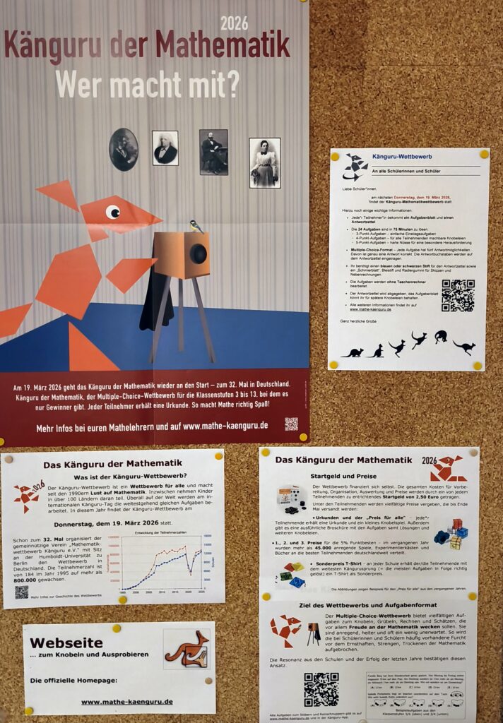 Die Informationen dazu erhaltet ihr von den Mathematiklehrer*innen oder Klassenlehrer*innen. Einen Aushang findet ihr außerdem neben dem Pädagogenzimmer.